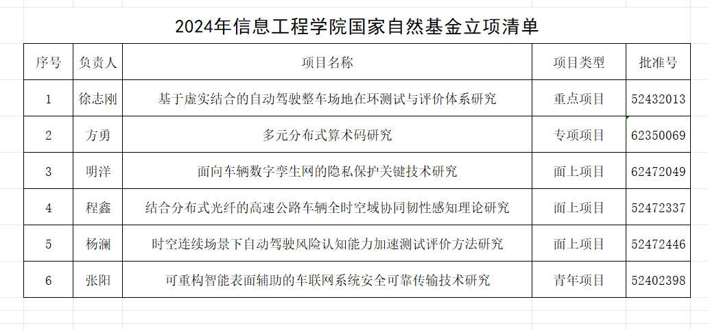8月23日,国家自然科学基金委公布了2024年度国家自然科学基金集中申报项目评审结果,我们获批立项6项。其中重点项目1项、专项项目1项、面上项目3项、青年科学基金项目1项,获批经费共计506万元。 获资助项目中,工程...