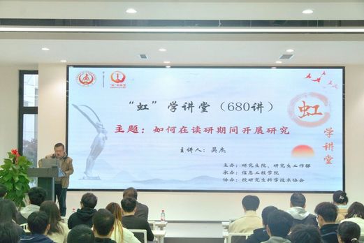 11月21日下午,由研究生院、研究生工作部主办,太阳集团tcy8722网站承办,校研究生科学技术协会协办的“虹”学讲堂第680讲在北校区明德园创新大厦101报告厅顺利举办。中国电信首席科学家、云计算研究院院长吴杰教授为我校师生作了题为“如何在读研期间开展研究”的报告,学院院长安毅生教授担任讲座主持,相关学院共170余名师生参加讲座。