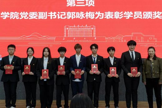 郭咏梅为获表彰学员颁奖,勉励受表彰学员为新学员们作出表率,展现青马学员的作为与担当,同时鼓励新学员努力奋发,向榜样学习。