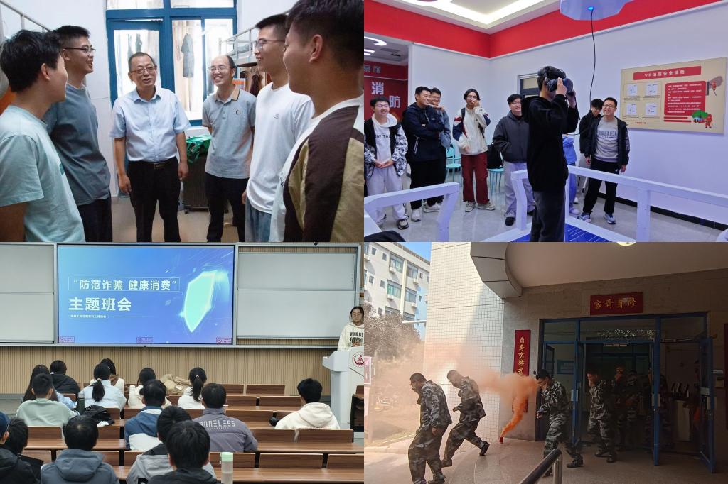 筑牢安全稳定防线,共绘安全社区“第一线”。宣防结合,以防为主。学院通过入学教育日、消防安全教育月等开展安全教育,打好护校安园“组合拳”,撑起育苗陪护“平安伞”。加强法治教育,架起“高压线”,实现安全微课、高校实验室安全通识课、学生手册考试、消防安全微课覆盖100%;利用普法宣传日、119消防宣传日、双11等重要节点,开展“预防诈骗 健康消费”法治讲座、校规校纪教育、诚信教育等校园安全教育8场。做足校内防范,念好“紧箍咒”,学院党政领导定期深入学生社区,践行“一线规则”,倾听学生意见建议,为学生办实事;学生会组织安全检查,对宿舍卫生状况、用电安全情况逐一排查,现场整改。做好实战演练,实践“动真格”,组织参观鸿渐园VR消防安全体验中心,培养学生防范火灾能力;积极响应学校消防应急疏散演练活动,增强师生安全防范意识。