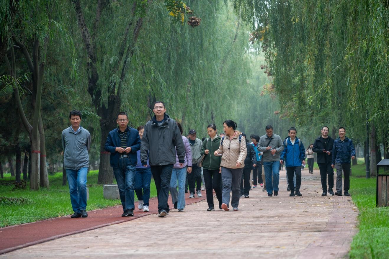 活动当天,阳光和煦,秋意渐浓。老师们身着轻便的运动装备,精神饱满地在公园西门集合。随着活动正式开始,大家沿着精心规划的路线,向公园的东门进发。