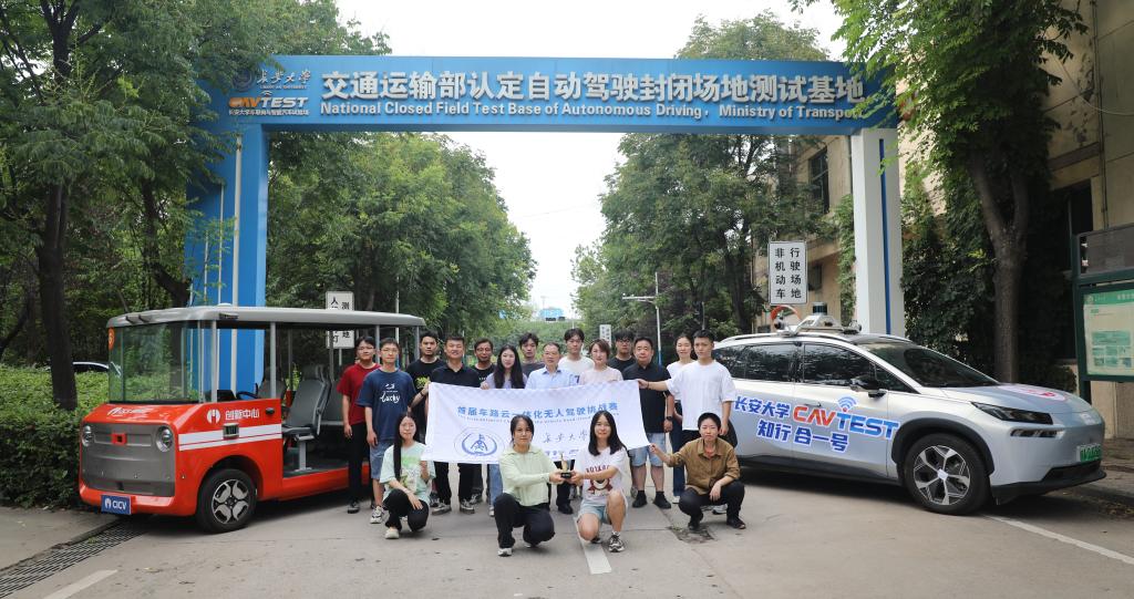 大阳城集团网站8722CAVTEST团队“知行合一”车队历经为期25天的算法训练与测试,努力学习自动驾驶算法的开发与部署技术,团结合作充分利用科研思维提升创新实践能力,出色完成了比赛规定的各项场景任务。经过激烈的预赛与决赛的比拼,最终获得决赛第一名的成绩,荣获全国一等奖。指导教师刘占文教授在颁奖典礼上,与参赛队员们贾晓航、李宇航等一同上台领奖。