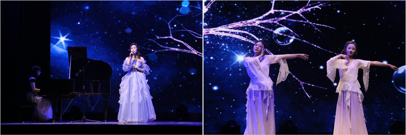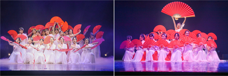 古典舞《绽放》以轻盈跃动的舞蹈、一朵朵花的盛开诉说着信息学院三十余载辉煌成就和累累硕果。