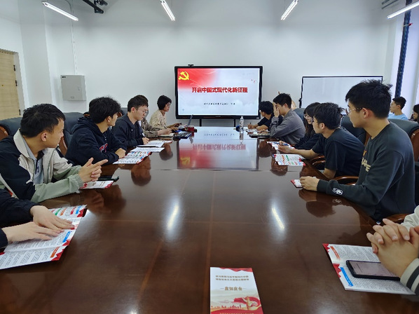为深入开展学习贯彻习近平新时代中国特色社会主义思想主题教育,引领党员践行初心使命,5月26日下午,太阳集团tcy8722网站党委副书记陈沛在学院515会议室讲授《开启中国式现代化新征程》专题党课,本科生第五党支部全体党员和部分研究生党员代表参会。专题党课由本科生第五党支部书记秦丰主持。