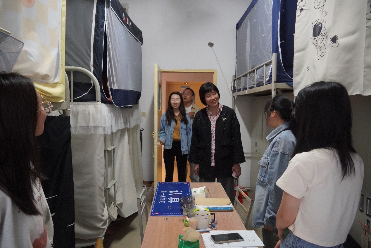 陈沛带队对学生宿舍进行了检查。对学生宿舍用电安全、违规电器、危险器械等进行了摸排,督促学生要经常开窗通风,清扫宿舍。陈沛强调要坚决克服麻痹思想和侥幸心理,做好日常学生宿舍安全工作,筑牢安全防线。