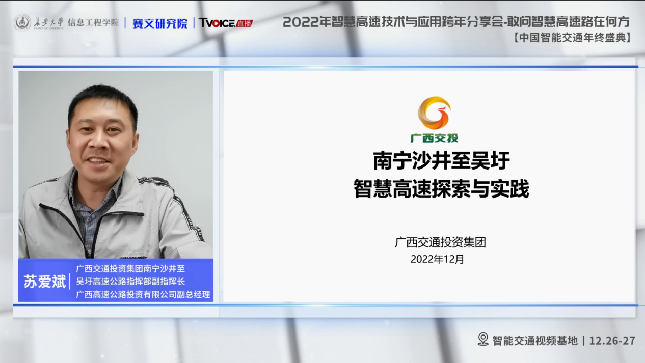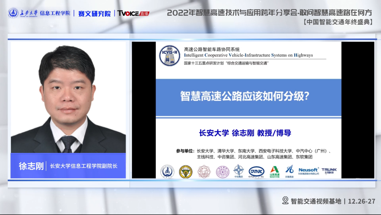 12月27日,由国内智能交通领域知名媒体——赛文交通网和赛文研究院主办,太阳集团tcy8722网站协办的2022年智慧高速技术与应用跨年分享会——“敢问智慧高速路在何方?”技术论坛在线成功召开,我们副院长徐志刚教授担任该分论坛召集人。此次分论坛邀请了来自国内知名高等院校、科研院所、高速公路业主和研发企业的11位嘉宾作主题发言,他们均是我国智慧交通领域的一线知名专家,对智慧高速的相关理论、关键技术、典型案例和标准法规具有深厚的研究基础和丰富的工程经验。