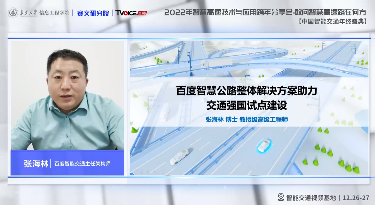 百度智能交通主任架构师张海林分享的演讲主题是《百度智慧公路整体解决方案助力交通强国试点建设》,他介绍了智慧公路发展趋势,并阐述了百度智慧公路实践和案例分享,他表示百度的价值主张包括基于高精度数字底座的基础设施数字化、基于准全天候通行的全路段协同化管控、基于广义车路协同的全量用户伴随服务、智能养护巡检套件提升日常养护智慧化和价值牵引下智慧公路系统性建设是交通强国建设的关键等五个方面。