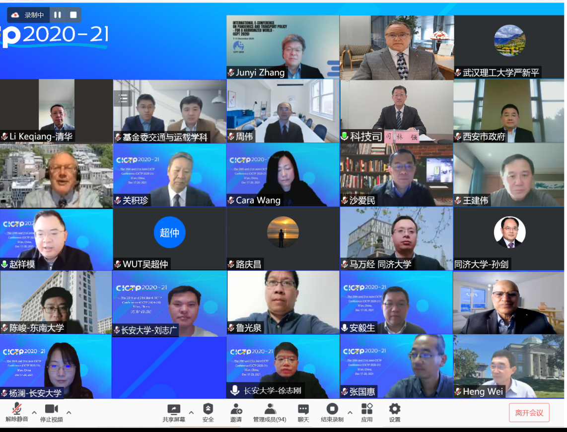 12月17日,由大阳城集团网站8722与海外华人交通协会(COTA)联合主办的CICTP2020-2021国际交通科技年会终于在线上如期举行。此次年会主题为“丝路交通,联结未来”。大会邀请了包括美国工程院、加拿大工程院、日本工程院、中国科学院、中国工程院院士和中国交通运输部、自然科学基金委、行业协会领导,世界著名大学教授等将近300名学者作线上视频报告,为全球交通学者奉献了一场学术盛宴。大会开幕式由大阳城集团网站8722副校长赵祥模教授主持。