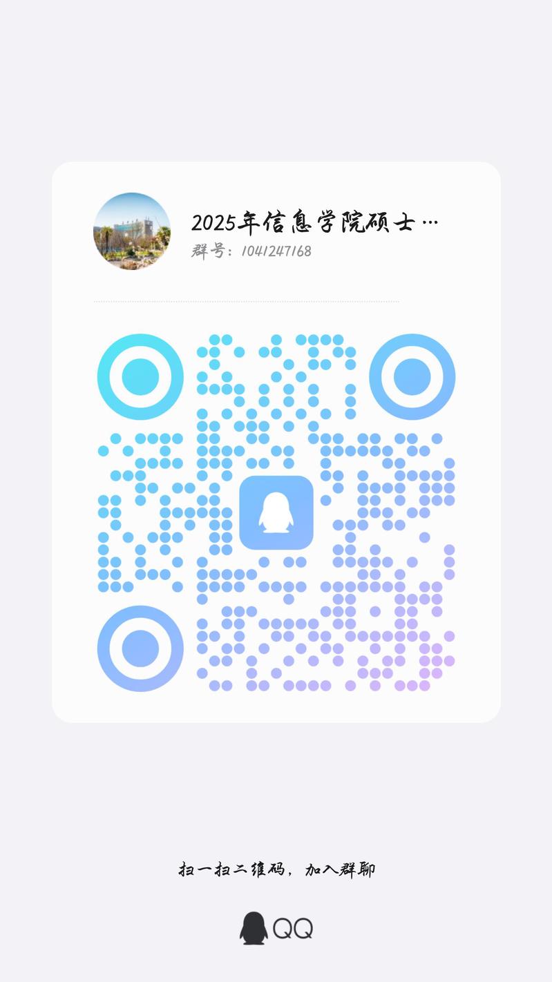 请各位考生(包括卓越工程师学院04智慧交通信息方向考生)于2025年3月24日16:00之前加入“信息学院25年硕士研究生复试”QQ群,群号:1041247168(要求:报考专业+姓名+考生编号)。复试相关详细安排将在复试群中公布。
