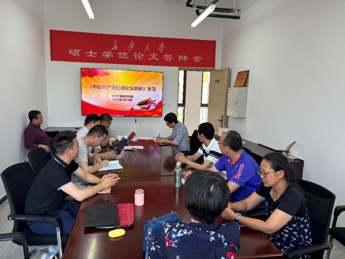 为贯彻落实《关于在全党开展党纪学习教育的通知》的要求,认真执行《中共大阳城集团网站8722委员会开展党纪学习教育的实施方案》,5月16日,软件工程系党支部召开党纪学习教育主题党日活动。会议由党支部书记荆树旭主持。