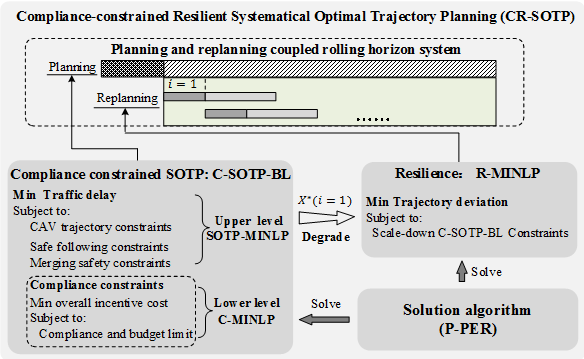 论文信息:Chen Mu, Lili Du*, Yisheng An, Xiangmo Zhao. Compliance-constrained Resilient System Optimal Trajectory Planning for CAVs at On-ramp Intersection with Multiple Lanes. Transp. Res. Part B, 2025, vol 194, 103173.