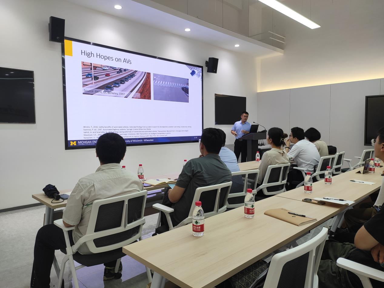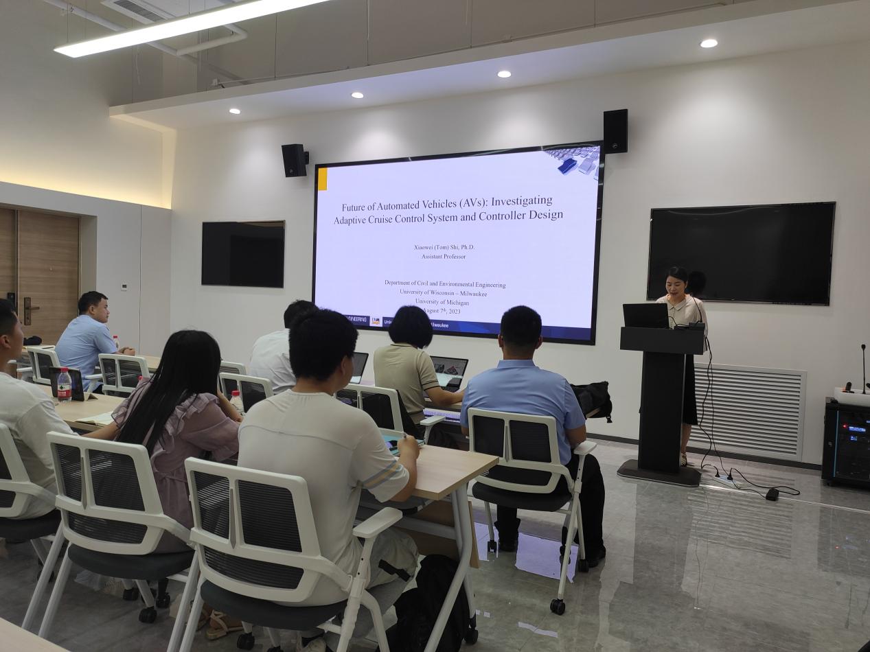 2023年8月7日在北校区车联网与智能汽车测试技术研究院一层110会议室,应郝茹茹老师邀请,威斯康星大学密尔沃基分校(University of Wisconsin - Milwaukee)土木与环境工程系助理教授师晓玮博士到太阳集团tcy8722网站开展学术交流,并作题目为“自动化汽车的未来:自适应巡航控制系统的研究和设计”的学术报告。