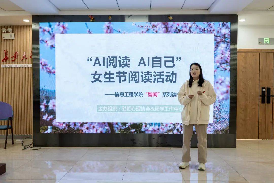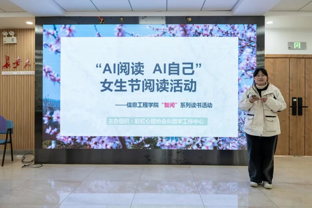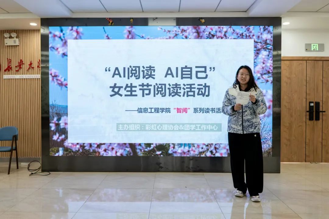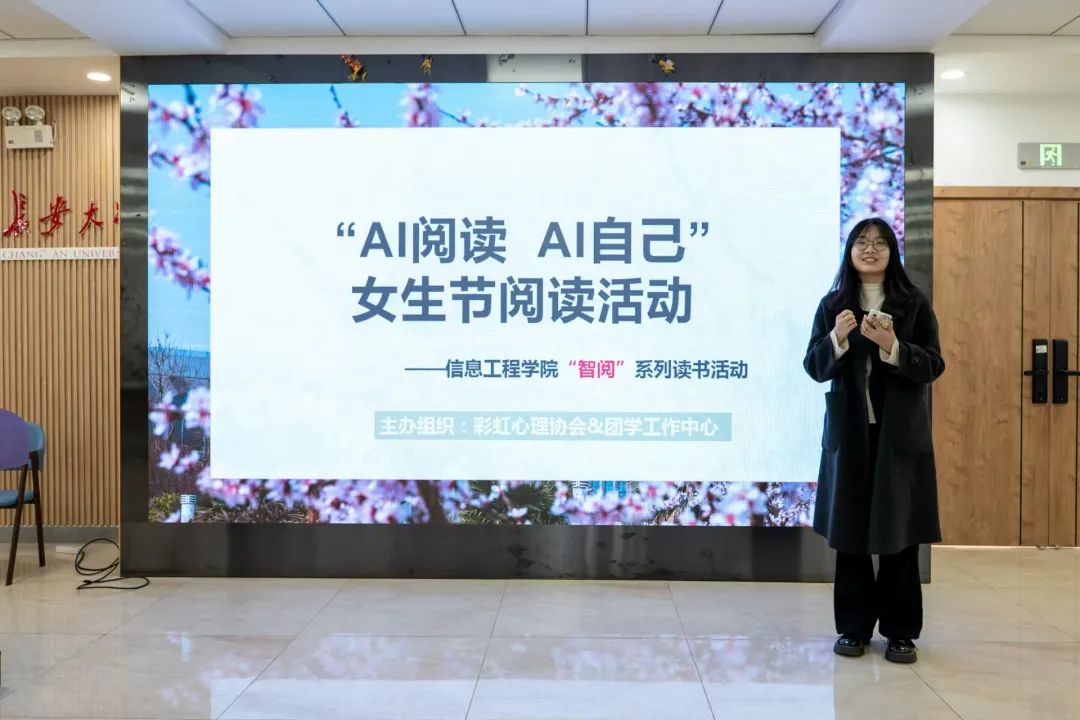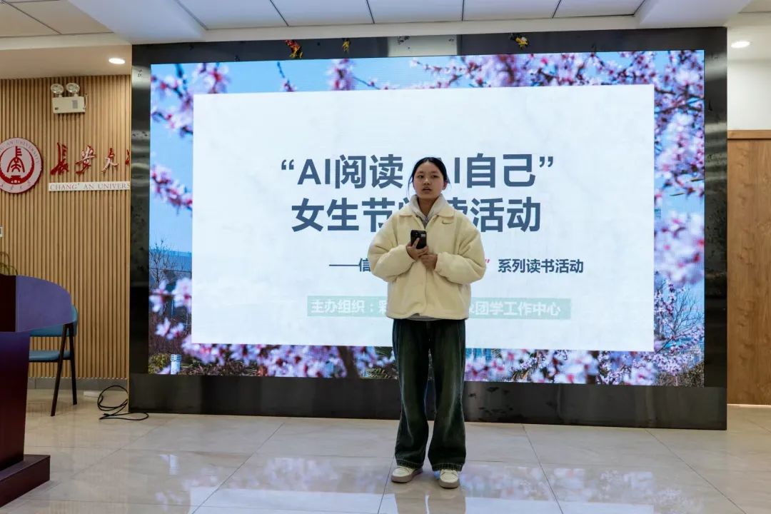 为庆祝国际妇女节,丰富学生精神文化生活,展现新时代女性的成长与创新思维,3月7日,我们于北校区“朝晖园”示范性园区举办“智阅”系列读书活动(第一期)——“AI阅读AI自己”女生节阅读活动,学院团委副书记邱旻颐,二级心理辅导站副站长刘洁怡,第十五期青马班学生骨干代表参加。
