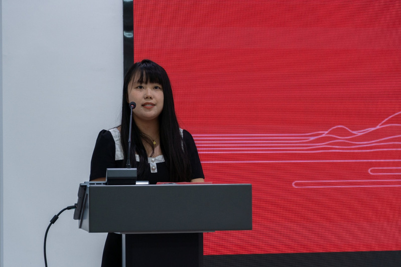 运动员代表蒙郭字萱首先对学校和老师在日常学习生活以及训练中提供的帮助表示衷心感谢,并鼓励各位同学在接下来的生活中继续坚持锻炼,积蓄力量,以坚忍不拔的精神投入学习生活,为学院的建设发展添砖加瓦。