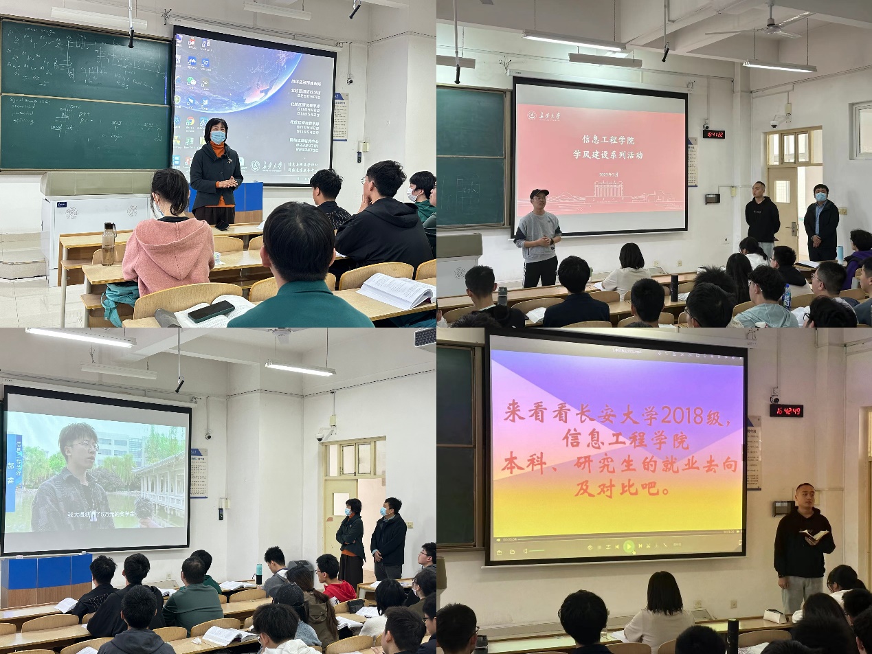 以助促学,开展学风主题班会。学院充分发挥辅导员、班主任队伍协同育人作用,开展学风建设座谈会和主题班会,针对学生德育建设以及职业发展等问题分析原因并给出建议,因材施教;组建学生党员帮扶团队,为学习困难学生提供“一对一”帮扶指导;开展学生干部、学生党员挂牌考试工作,强调诚信考试的重要性,引导学生树立良好的学习意识;学生干部积极发挥带头作用,安排班级进行自主自习,开展团日活动增进同学的友谊,为学院学风建设构筑坚实基础。