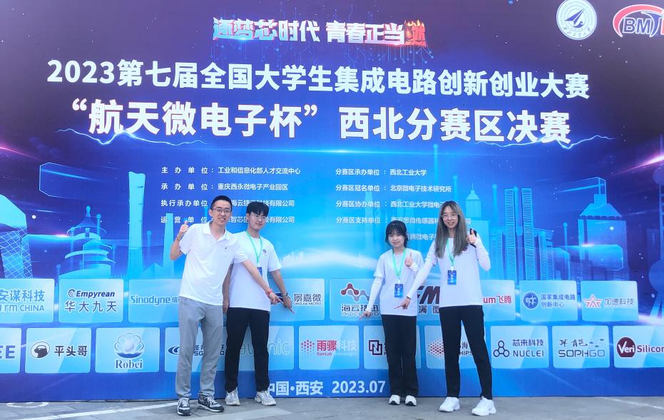 2023年7月24-26日,第七届全国大学生集成电路创新创业大赛“航天微电子杯”西北赛区决赛及闭幕式在西北工业大学长安校区举办。我们计算机科学系教师马峻岩指导的两支2021级本科生参赛队,经过现场激烈的答辩和作品展示,荣获西北分赛区三等奖2项。本届比赛共有来自陕西、甘肃、山西等33所高校,637支队伍,超1800人参赛,经过层层比赛,最终西北分赛区决赛入围团队241个。